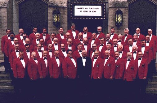 In 1998 the Amherst Male Glee Club and it's "fifty plus members" celebrated FIFTY YEARS of SONG all under the direction of our founder and present Music Director, Walter Reitz. The Amherst Male Glee Club hosted the International Big Sing 98 in Buffalo, NY that same year. We're looking for men ages 18 on up who enjoy singing and can carry a tune (or at least pick it up when someone else drops it!) If you enjoy entertaining, great fellowship and the tremendous support and friendship that develops through the years this might be what you've been missing!! We ARE A FAMILY ORIENTED GROUP! We are a group of single and married men who enjoy the fellowship which song brings together! Information from the Amherst Male Glee Club web site |